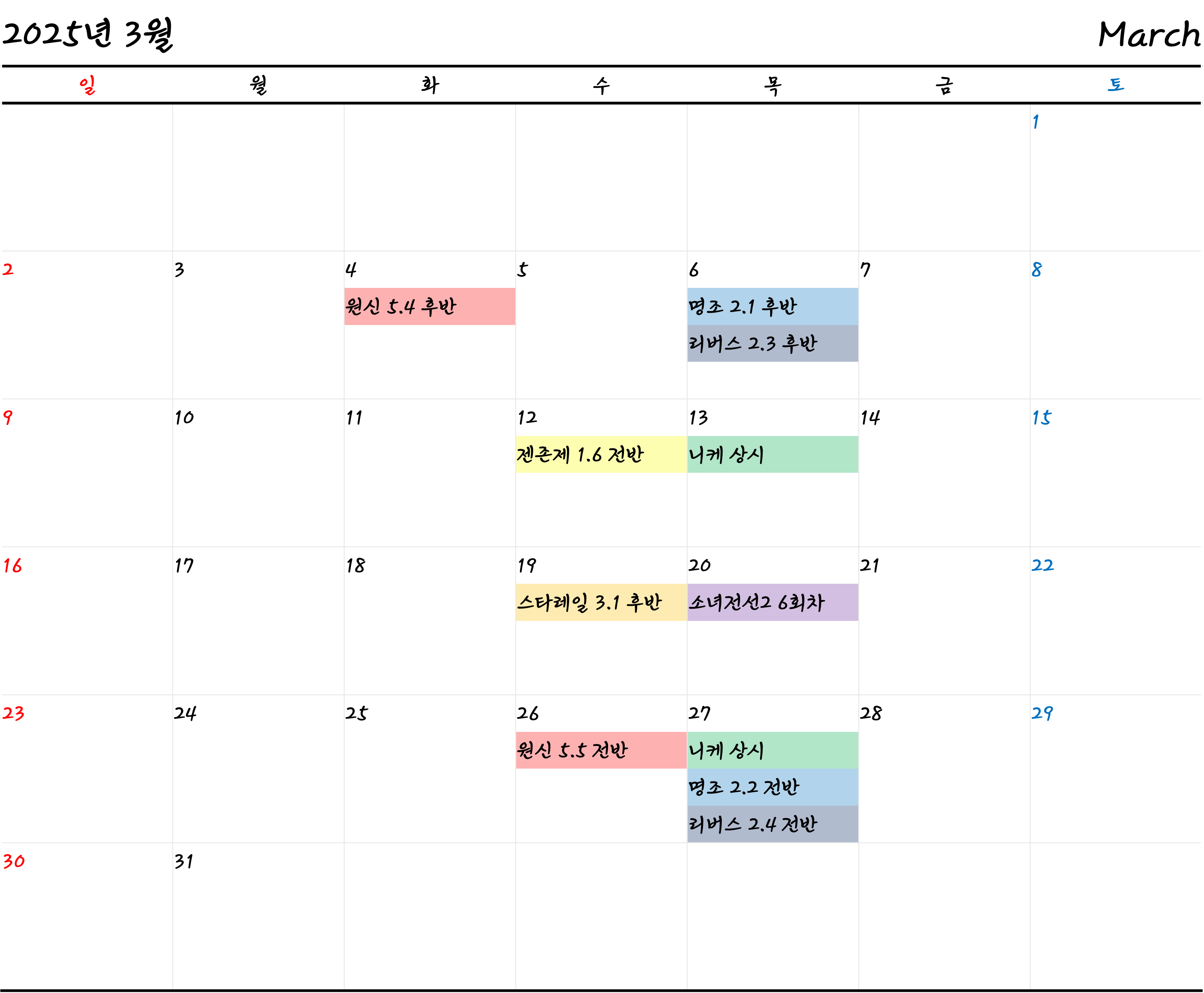 카테고리에 포함된 게임의 3월 픽업일정 메모입니다.