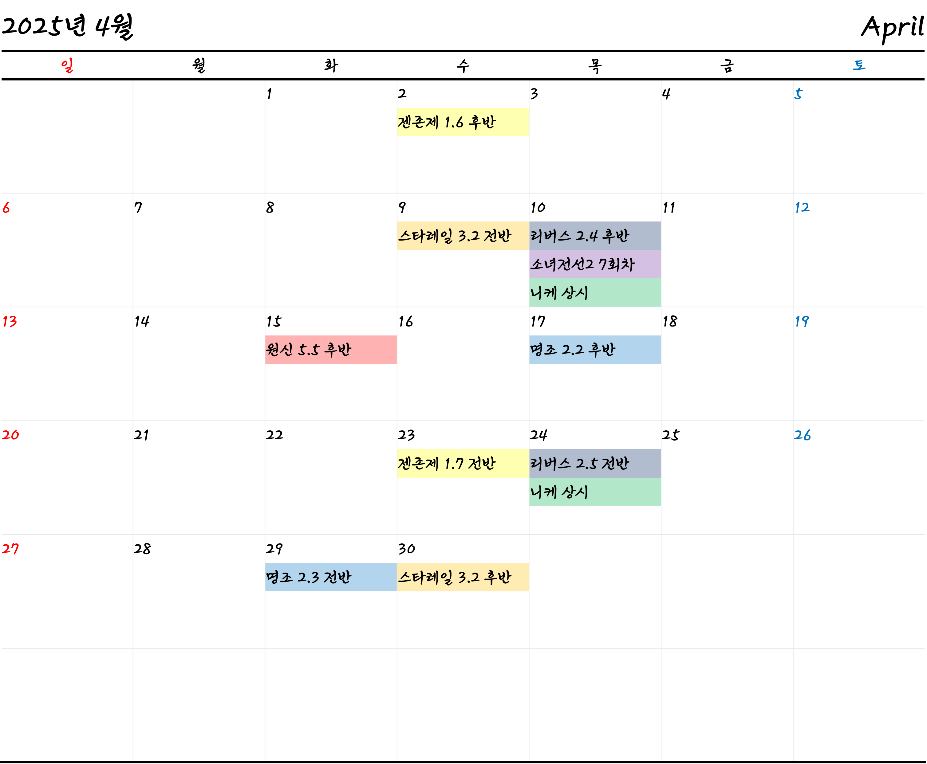 카테고리에 포함된 게임의 4월 픽업일정 메모입니다.