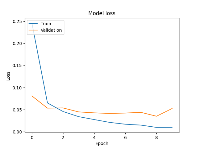- plt.legend(['Train', 'Validation'], loc='upper left'):