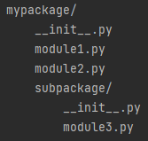 - module1.py, module2.py는 mypackage에 속한 모듈입니다.