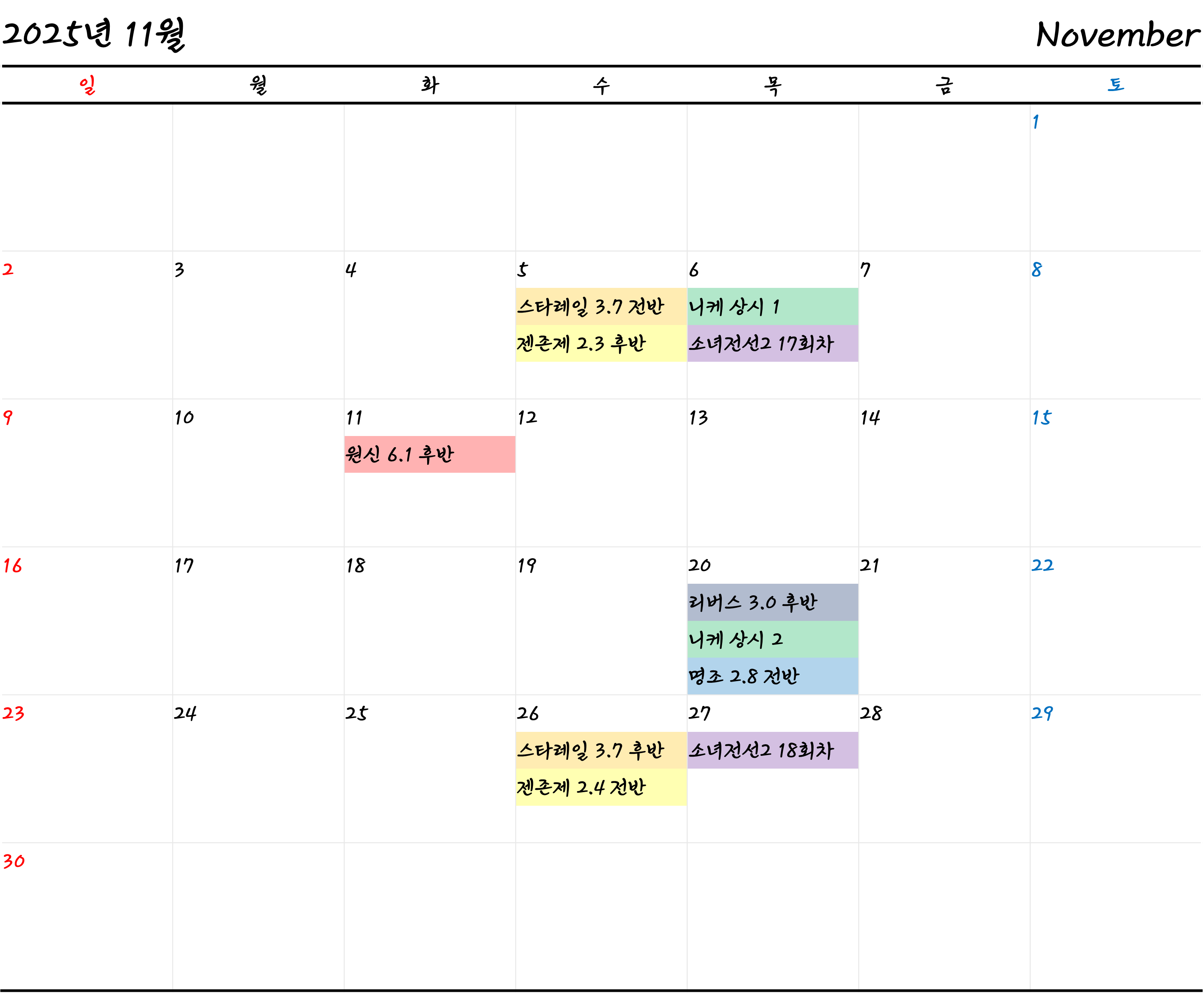 카테고리에 포함된 게임의 11월 픽업일정 메모입니다.