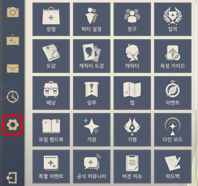 1. 게임 내에서 ESC 클릭 후 설정 버튼 클릭