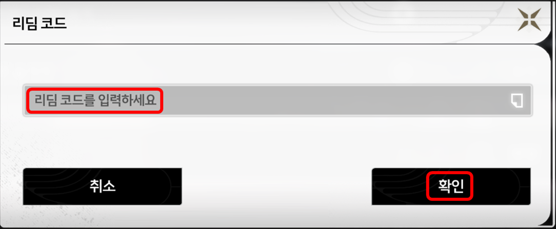 4. 리딤 코드 입력 후 [확인] 클릭