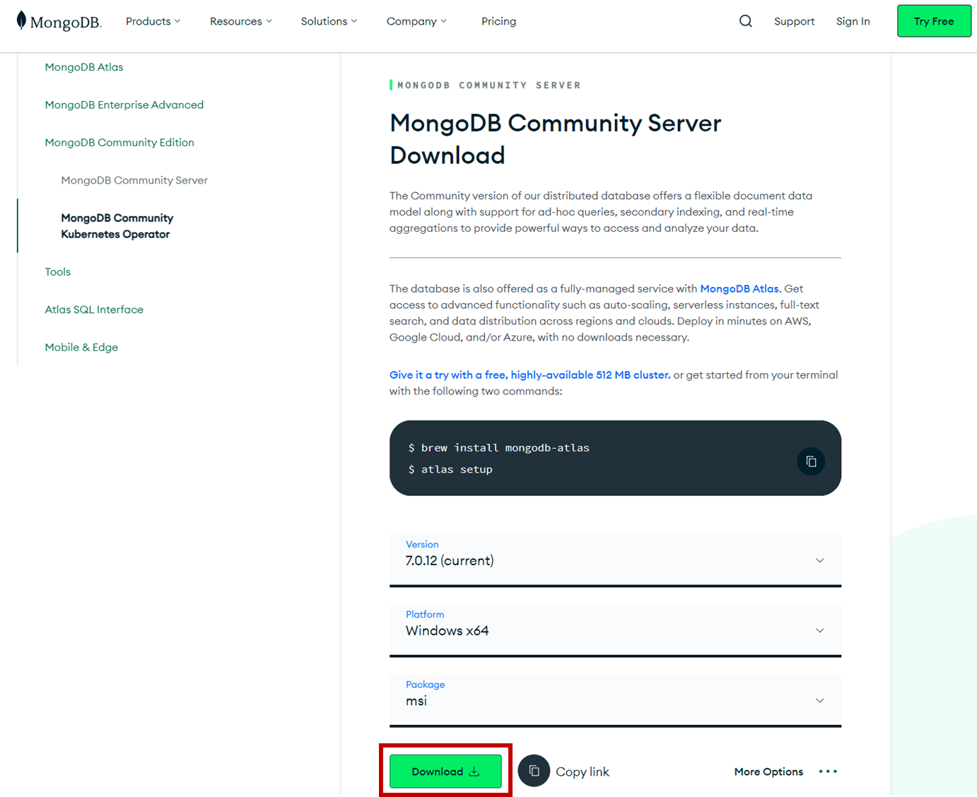 Try MongoDB Community Edition