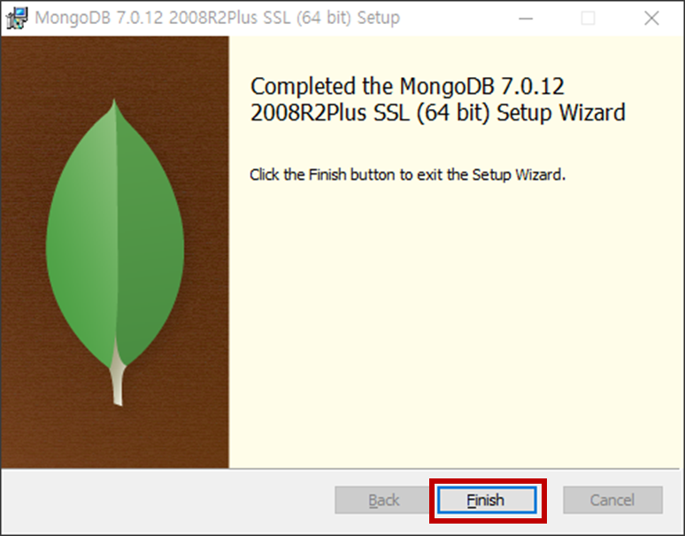 - 설치경로를 별도로 지정하지 않았다면 일반적으로 C:\Program Files\MongoDB\Server\<version>\bin입니다.