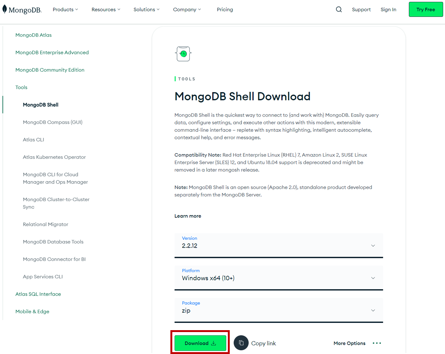 - 설치파일 주소: https://www.mongodb.com/try/download/shell