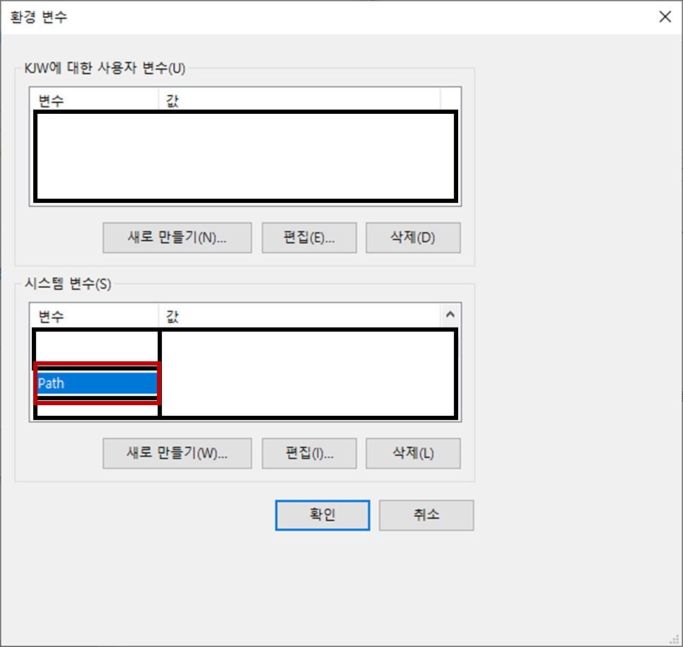 - [시스템 변수] 섹션 내에 [Path] 변수를 더블클릭합니다.