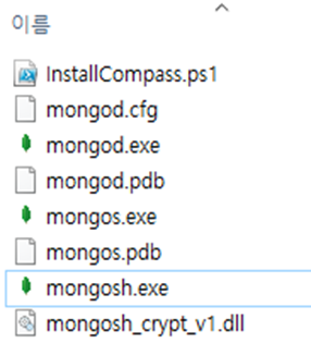 - 위 경로에 mongod.exe와 mongos.exe만 확인할 수 있습니다.