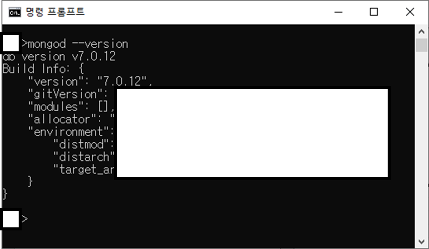- cmd 창에 "mongod --version"를 입력하여 설치 여부를 확인합니다.