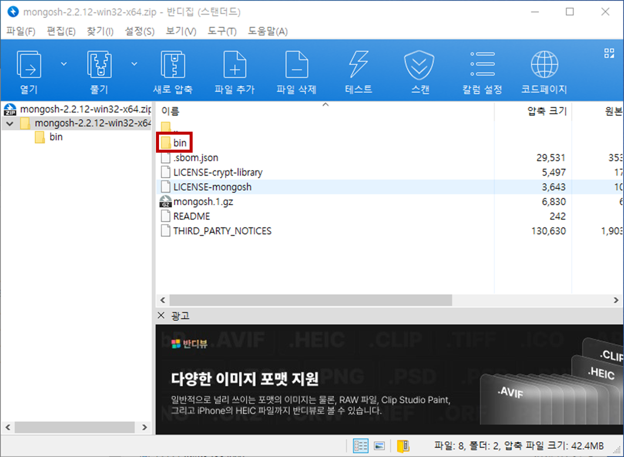 - [bin] 경로를 클릭합니다.